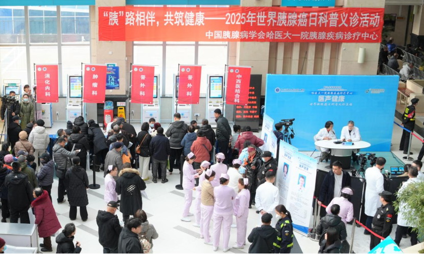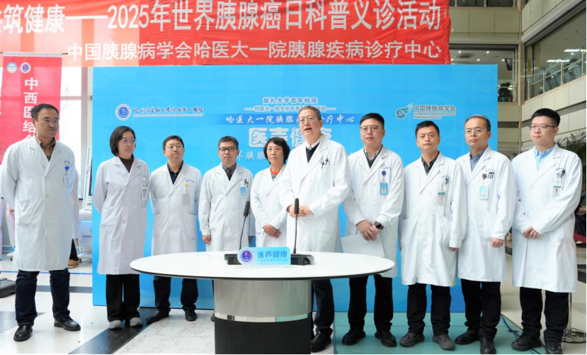 在“世界胰腺癌日”来临之际,哈尔滨医科大学附属第一医院胰腺疾病诊疗中心携手中国胰腺病学会,于11月20日上午在哈医大一院门诊大厅举办“‘胰’路相伴,共筑健康”主题惠民科普义诊活动。活动通过“线上+线下”双轨模式,义诊群众超千人次,近十万人次通过网络直播参与互动,最高同时在线达1200余人,以专业力量推动胰腺癌防治知识普及,献礼哈尔滨医科大学百年校庆。