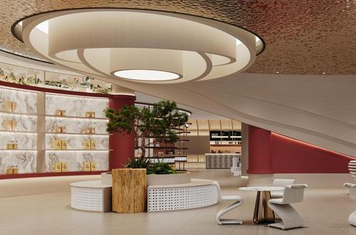 中心内部规划九大功能区域,包括接待区、宣传展示区、文创产品展区、“佳木斯礼物”专区、汉服体验区及阅读区等,全方位满足游客多元化需求。设计上以中性灰与暖白色为基调,通过杏朱色立柱与木色装饰点缀中式韵味,同时融入赫哲族图腾、鱼皮文化等传统元素,结合现代简约风格,形成冷暖交融、古今辉映的视觉体验,成为展示城市魅力的“文化窗口”。