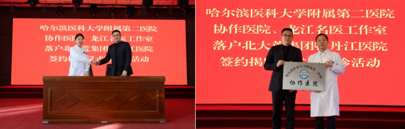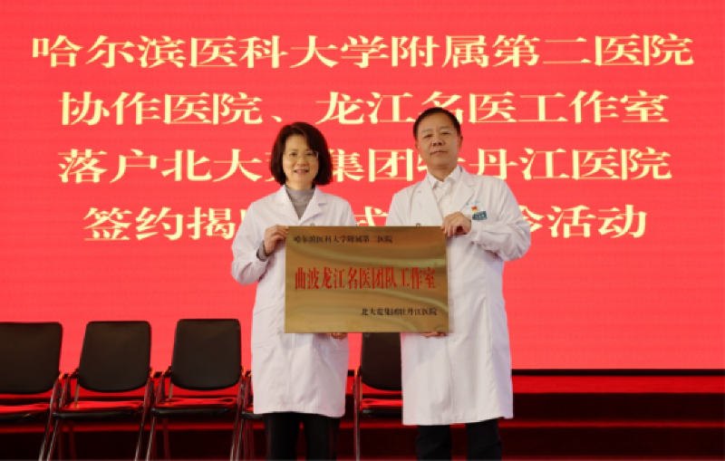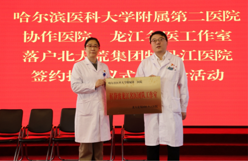 随后,双方签署协作医院协议并授牌,哈医大二院消化内科曲波、心内科候静波、妇产科李佩玲三位教授的“龙江名医团队工作室”正式落户。未来,双方将以协作医院与名医工作室为纽带,通过技术帮扶、人才培养、病例研讨、手术示教等长效机制,全方位推动区域医疗服务提质升级。