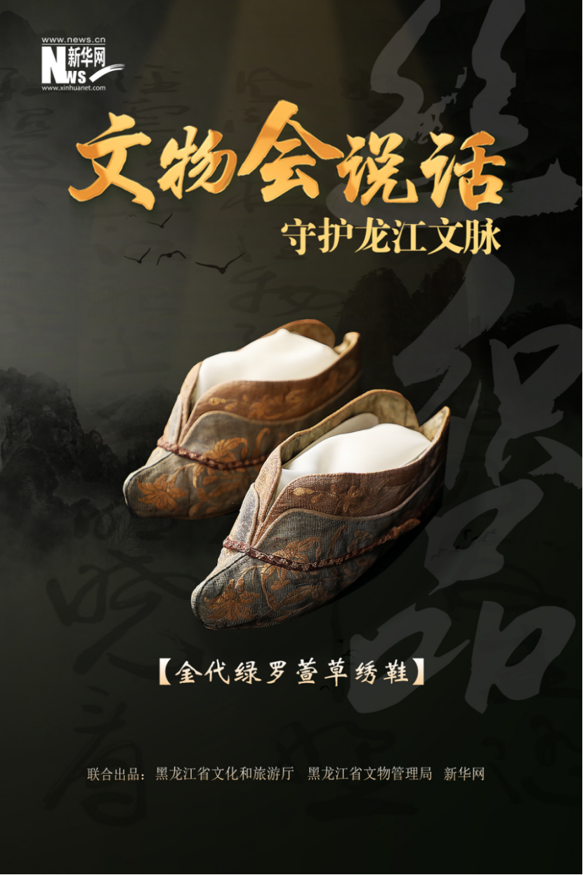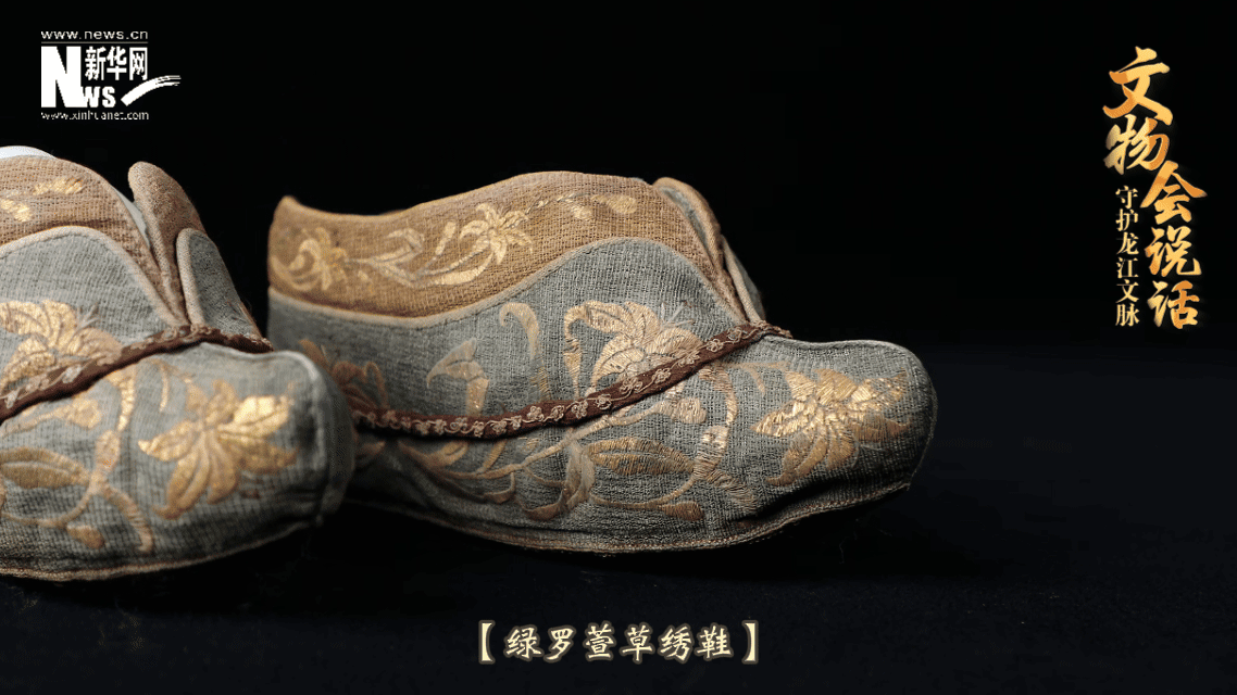 国家一级文物——金代齐国王墓出土的绿罗萱草绣鞋(黑龙江省博物馆藏)