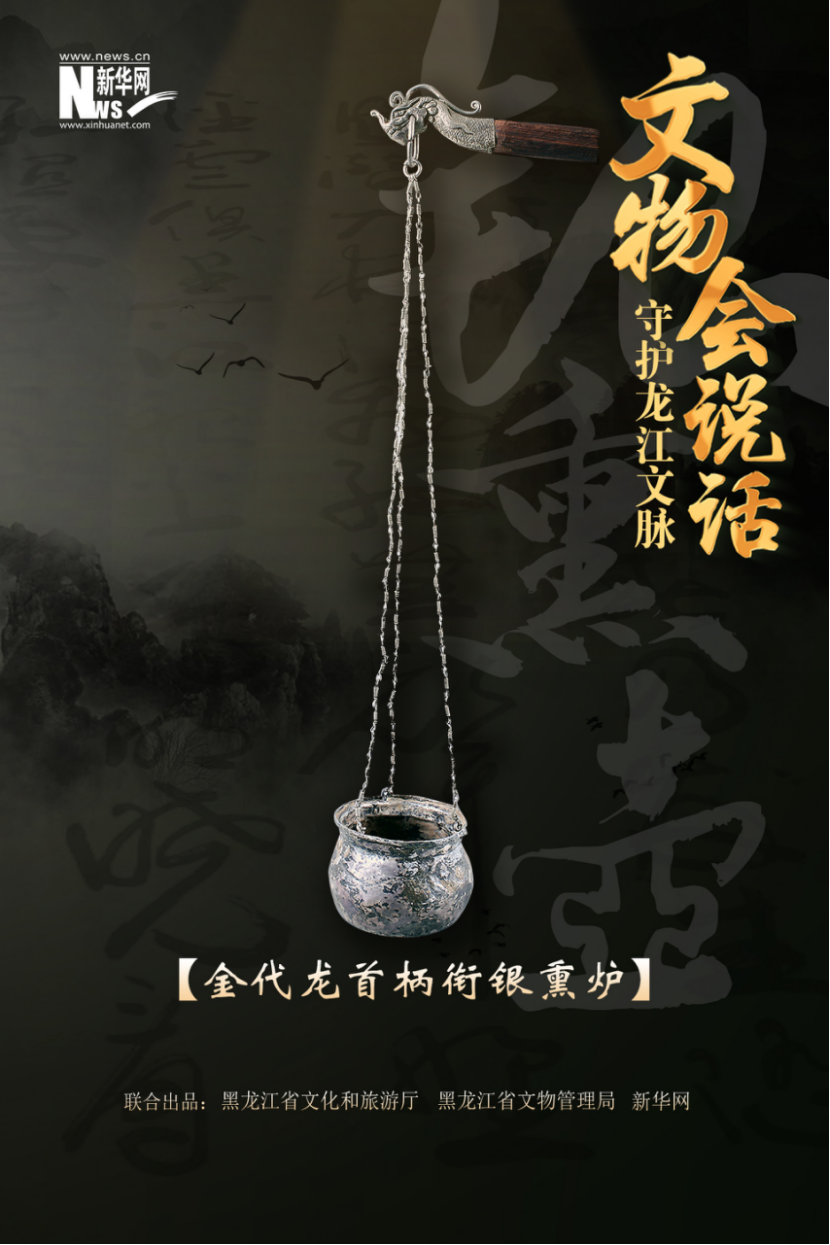 上京城遗址北城出土金代龙首柄衔银熏炉(金上京历史博物馆藏)