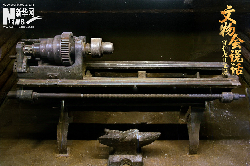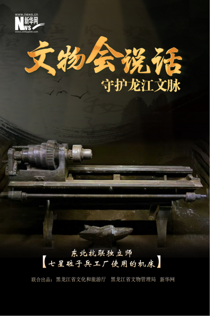 东北抗联独立师七星砬子兵工厂使用的机床:国家一级文物,机身长205厘米,高24厘米;机头高70厘米,长37厘米,宽35厘米;脚架高58厘米。整个机床形体完整,部件残缺,并已锈蚀。