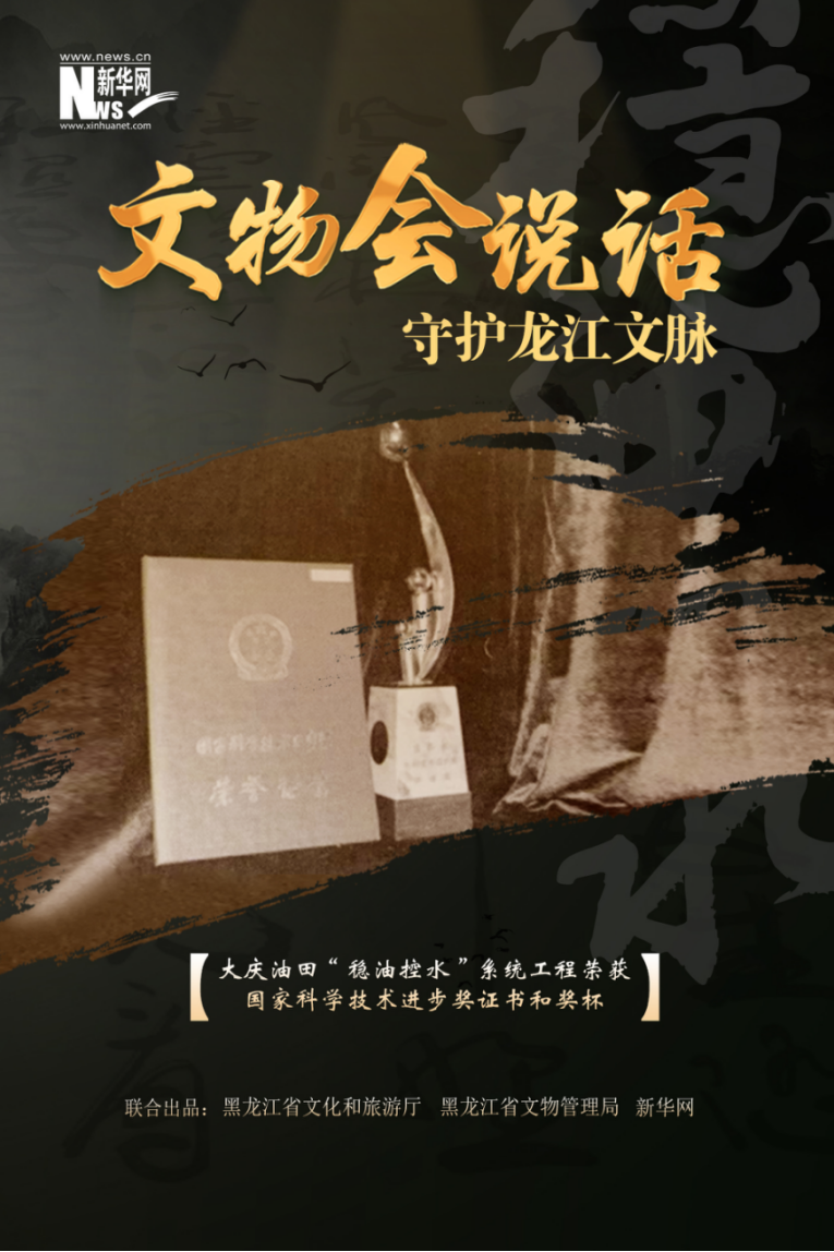 大庆油田“稳油控水”系统工程荣获国家科学技术进步奖证书和奖杯(大庆油田历史陈列馆藏)