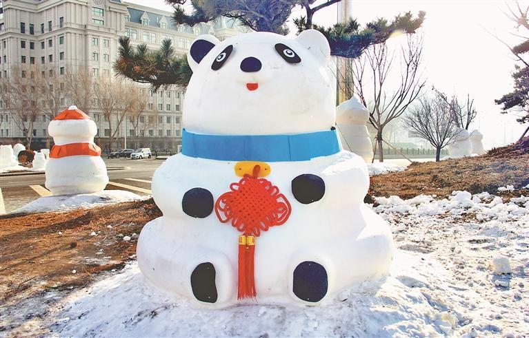 15日,哈尔滨市南岗区一曼街,以雪人为主的数十个可爱的小雪塑吸引了许多人的目光。这些雪塑高近两米,其中有的雪人戴着红帽子,围着红围脖;还有一些憨态可掬的大熊猫等小动物……这些雪塑成为街头一道美丽风景,为冬日冰城增添了更多的魅力。(记者 苏强摄)