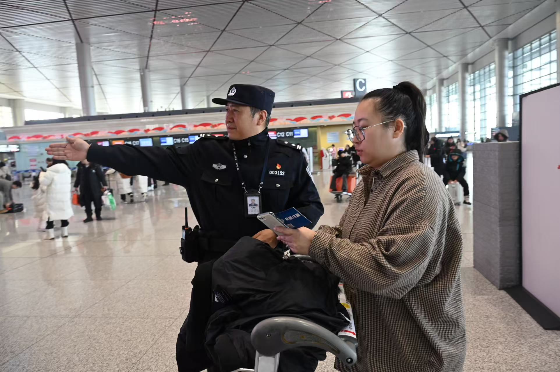 针对客流高峰,升级多语言服务体系,搭建跨境旅客服务协作群,高效服务外籍旅客。前移“空港警务服务台”,开通临时乘机身份证明快速通道,3分钟内即可办结,今年已办理4.3万余张。累计接待旅客求助1万余人次,找回遗失物品近千件,挽回经济损失超百万元。