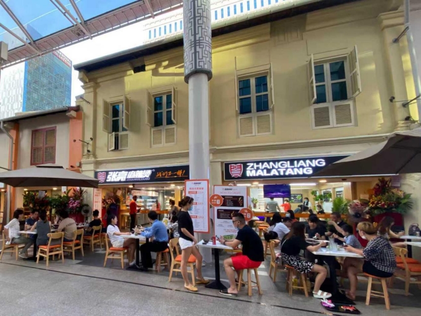 食客在张亮麻辣烫新加坡牛车水店用餐。