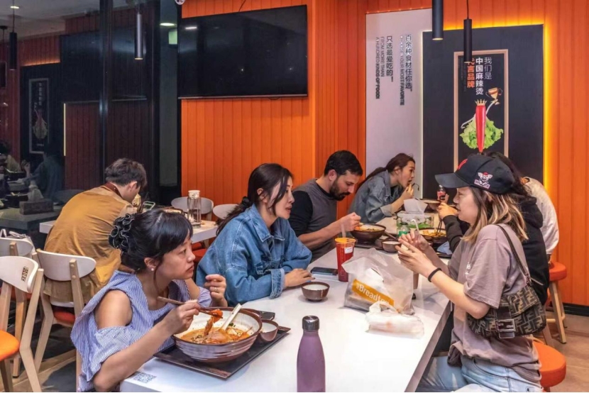 食客在杨国福麻辣烫伦敦旗舰店用餐。