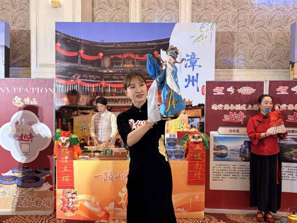 推介会现场设置了福建非遗展板与互动体验区,包含“拓福气”两省主题木板年画、“簪福花”泉州簪花、“看福戏”龙岩客家木偶与漳州布袋木偶等丰富多彩的内容。演出环节在闽黑两省歌舞剧院演员联唱的《福至雪乡暖洋洋》中拉开序幕,《大东北我的家乡》《鼓浪屿之波》《太阳岛上》《爱拼才会赢》等两地经典歌曲相继唱响。