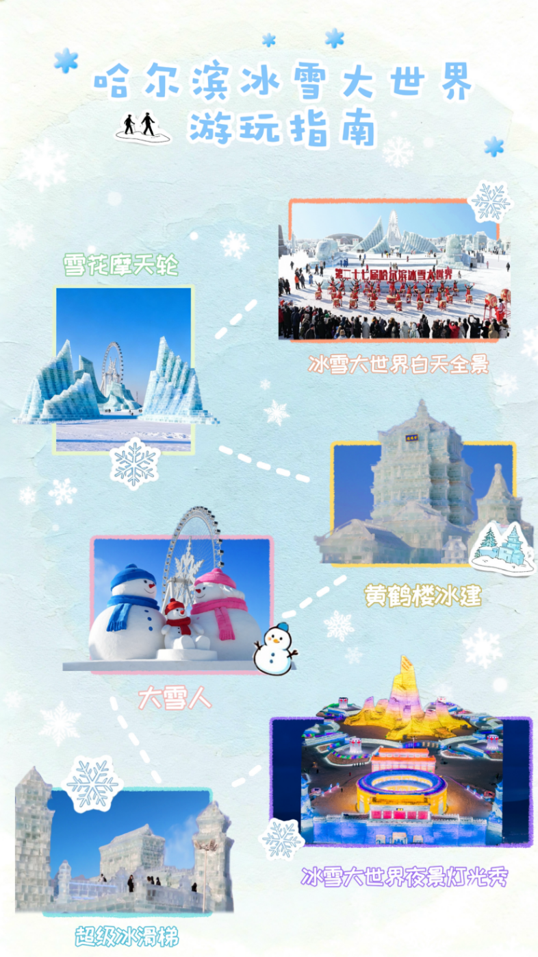 想把冬天的浪漫拉满,就来哈尔滨冰雪大世界吧!坐雪花摩天轮俯瞰冰雕盛景,冲超级冰滑梯感受速度与激情,和雪人一家打卡合影,看黄鹤楼冰建的巧夺天工,白天的纯白冰原、夜晚的璀璨灯光,每一帧都是冬日限定美好,速来打卡!
