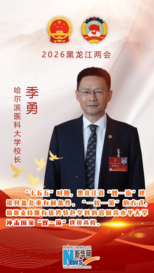 2026年黑龙江省两会于1月30日至2月3日召开。会议期间,黑龙江省人大代表、哈尔滨医科大学校长季勇做客新华访谈。季勇结合《2026年黑龙江省政府工作报告》,围绕如何抢抓“十五五”机遇探索黑龙江省“双一流”建设突破路径等话题,分享了他的观点。