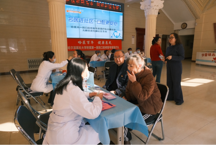 每年的3月20日是世界口腔健康日,当天,哈尔滨医科大学附属第一医院口腔修复科组织专家医疗团队,深入哈尔滨市道里区兆麟社区开展公益义诊活动,把优质口腔健康服务送至居民“家门口”,践行“健康惠民”理念。
