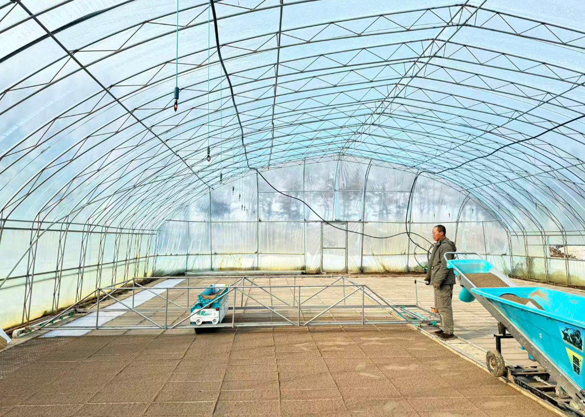 他的成功带动了更多种植户投身科技种田。农场通过“春活秋做”模式、技术指导小组及现场培训,帮助种植户掌握设备操作技能,自动一体化播土设备已成为棚区“标配”。