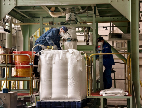 大庆石化公司储运中心包装二车间岗位人员正在进行B型氯化聚乙烯新产品包装。杨志明 摄