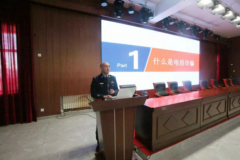 活动中,公安局民警结合发生在本地区内的相关网络诈骗案例,重点向师生讲解了电信网络诈骗案件的特点、作案手法以及防范措施,提醒师生在日常生活中提高安全防范意识,不要轻信涉及银行账号、密码等个人隐私的短信、电话、微信信息等,如遇可疑情况要及时报警。民警用一个个典型事例教育引导广大师生要知法、懂法、守法、谨防上当受骗。同时,呼吁学生将此次课堂上学到的网络安全知识“带回家”,指导自己的家长切实提高防骗能力,守好自己的“钱袋子”。