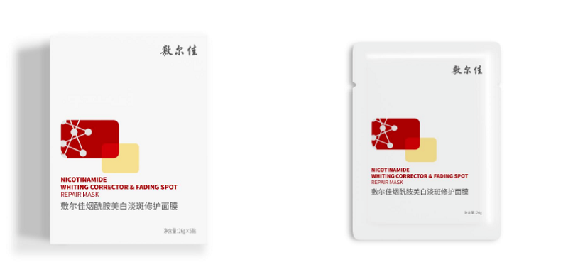 ↑敷尔佳烟酰胺美白淡斑修护面膜产品宣传图