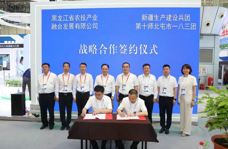同时,在15日上午,黑龙江省农投产业融合发展有限公司与新疆生产建设兵团第十师一八三团就鲜食玉米项目在哈洽会现场黑龙江省农业投资集团展区举行战略合作签约仪式。此次合作双方将以鲜食玉米“现代农业产业园”建设为抓手,按照“资源共享、优势互补”的原则,立足优势农业产业,积极推进交流合作,携手打造鲜食玉米产业新的经济增长点,促进援疆产业高质量发展。